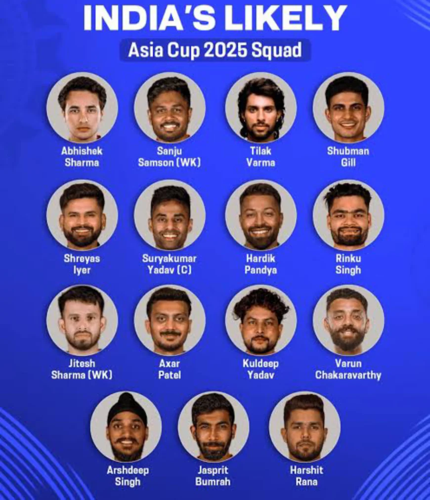 Asia Cup 2025: India Announce 15-Member Squad, Bumrah Returns to Bolster Pace Attack