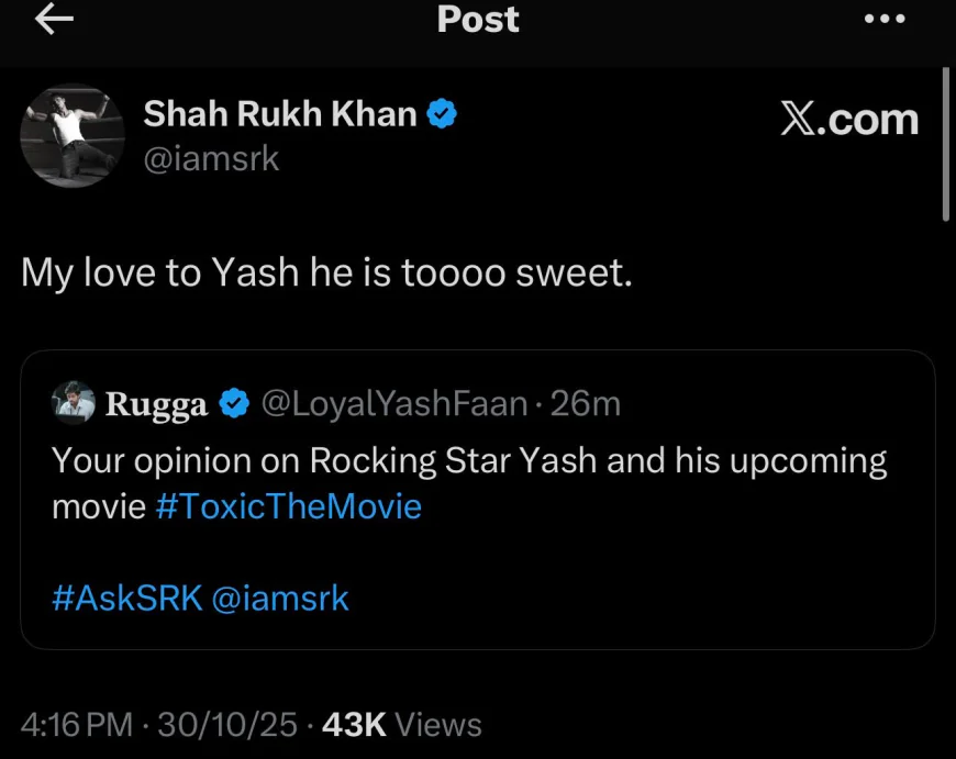 The #AskSRK sessions are always a delight for fans, known for Shah Rukh Khan’s mix of wit, warmth, and humility. Amid hundreds of fan questions, one user asked the superstar for his thoughts on Yash and his upcoming movie Toxic. SRK replied in his signature affectionate style: