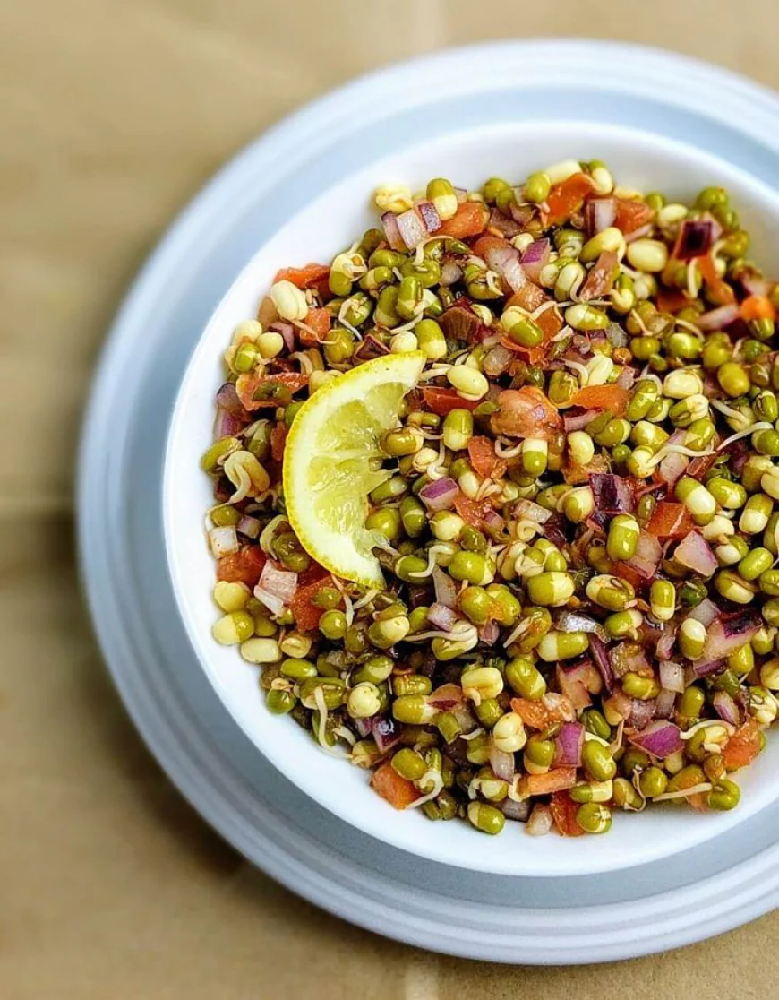 Forget boring lettuce. Try a sprouted moong salad with cucumber, tomato, onion, lemon, and a hint of green chili. It’s crunchy, refreshing, and loaded with protein, perfect when you want something light but satisfying.