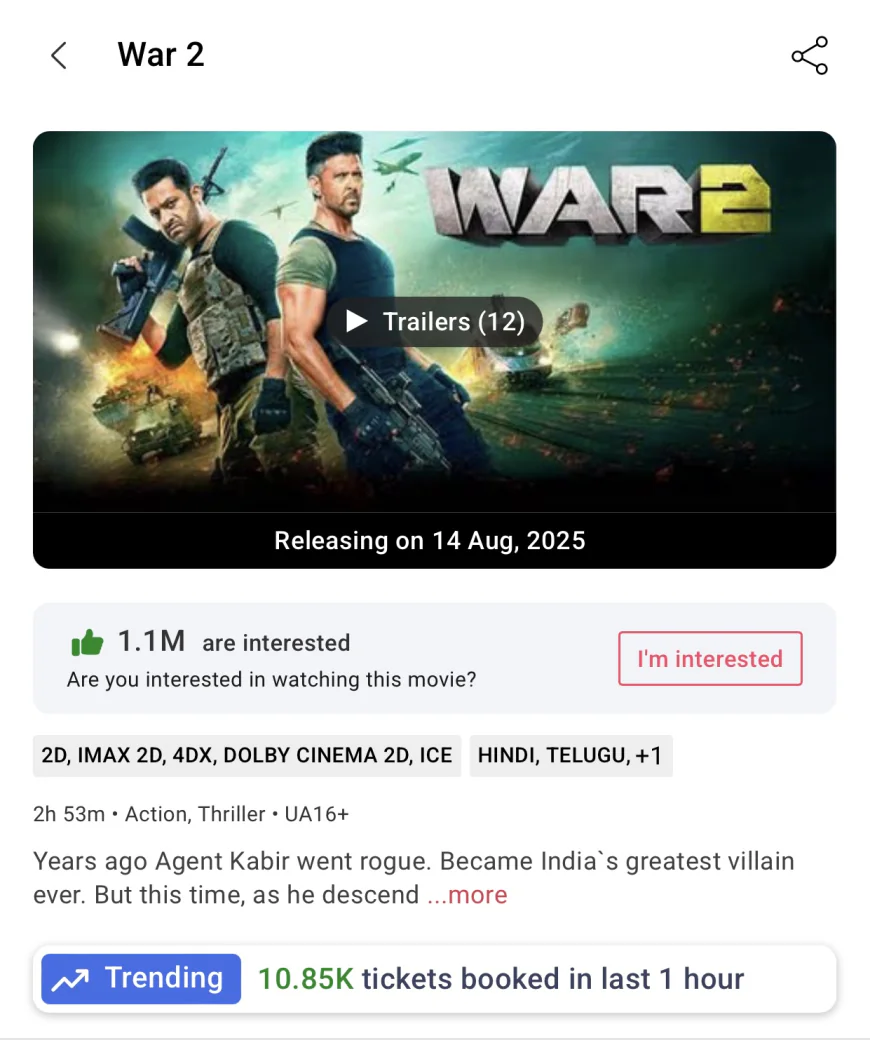 Yash Raj Films isn’t holding back. War 2 will hit an unprecedented 5,000 screens across the country, making it one of the widest Hindi releases ever. Premium formats like IMAX and 4DX are also in play, and early sales show strong demand in these high-end screens. The hype isn’t just online at a pre-release event in Hyderabad, thousands of fans turned up, requiring drones, barricades, and over a thousand police officers to control the crowd.