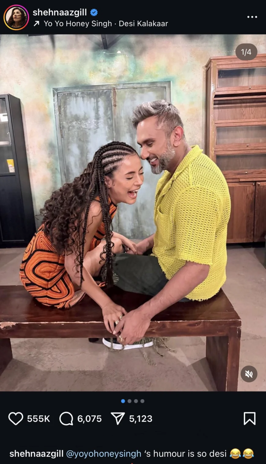The behind-the-scenes pictures show the two artists sharing laughs between shots. In one candid moment, Shehnaaz captioned the photo, “@yoyohoneysingh’s humour is so desi,” giving fans a peek into their easy chemistry. Honey Singh also shared a shot of Shehnaaz in his story with the caption, “We made this jatti look Jamaican,” clearly excited about their creative fusion.